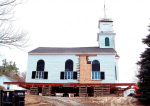 During this time, it was learned that the Meeting House was in desperate need of a new foundation due to settling: since it made no sense to repair any other part of the building without a solid foundation, this would be the first project as well as the first of a number of structural surprises that we had as we tackled this restoration. Construction documents were then drawn up, and a contractor was located to lift the building and install a new foundation. By November, this project (referred to as Phase 1 in our plan) was complete.