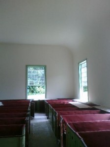 The end of 2009 saw a building that was square and level and a roof that was no longer sagging. The new windows restored the Meeting House to a more accurate eighteenth-century look. The top panes were restored and the bottom panes were renewed as the old 4×3 pane arrangement was not historically correct.