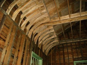 Work began on the exterior of the building and the roof structure. The engineer investigated the existing roof structure and the obvious sagging problem. The guiding principle throughout this process was to keep as much of the original structure as possible and to repair instead of replace it. A special emphasis was placed on saving the horizontal 42-foot beams in the roof structure since they appear to be from the original Meeting House that was built on Bly Hill in 1791.