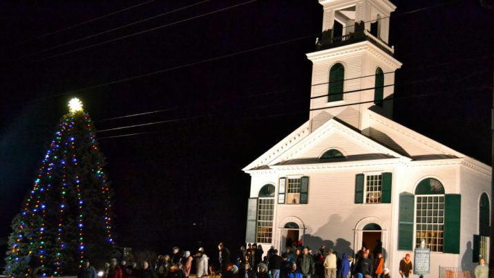 In December, Alice’s Tree was lit for the first time to honor Alice Lynn, a long-time Newbury resident and one of the original Meeting House trustees.